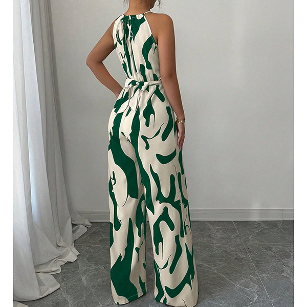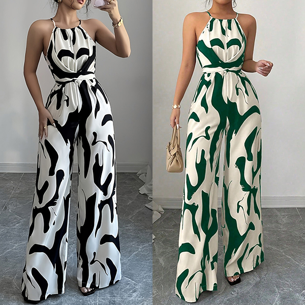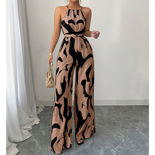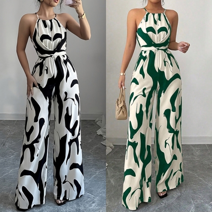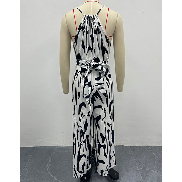 Fashion Halter Neck Cow Print Wide-leg Jumpsuit