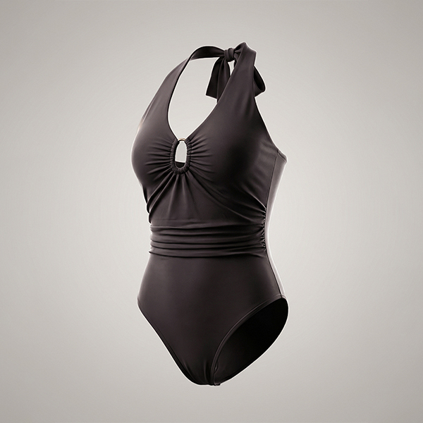 Fashion Halterneck O-ring Sleeveless Ruched Slim-fit Bodysuit