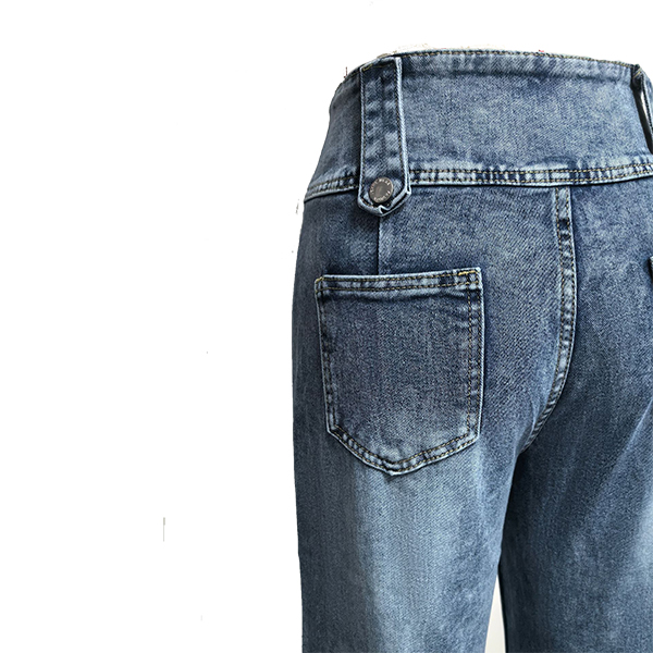 These sophisticated jeans feature flattering high-rise waistline with authentic button fly closure and dramatic side button slit detailing for contemporary denim elegance. Pair with fitted tops and sneakers for contemporary casual appeal.