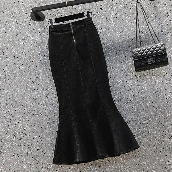This is a trendy and versatile skirt that exudes casual chic vibes and modern elegance. It features high-rise and fishtail hem adds a touch of sophistication and flair, creating a unique and stylish twist to a traditional denim skirt. Perfect for a casual day out, a weekend brunch, or a stylish outing with friends.