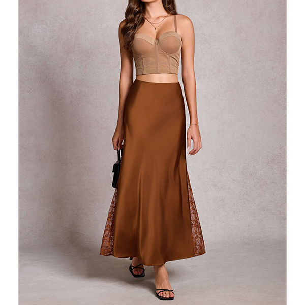 Fashion High-rise Lace Spliced A-lined Skirt