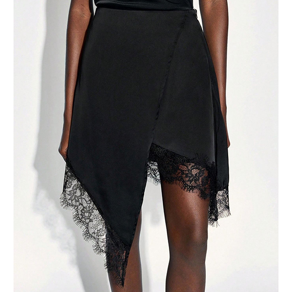 Look at this skirt~ Delicate lace splicing adds luxurious texture and vintage-inspired charm, creating eye-catching contrast and dimensional interest. And the irregular hemline brings contemporary edge and dynamic movement, transforming this skirt from traditional to fashion-forward. Pair with a silky camisole and heels for evening glamour, or style with a fitted sweater and ankle boots for chic daytime appeal.