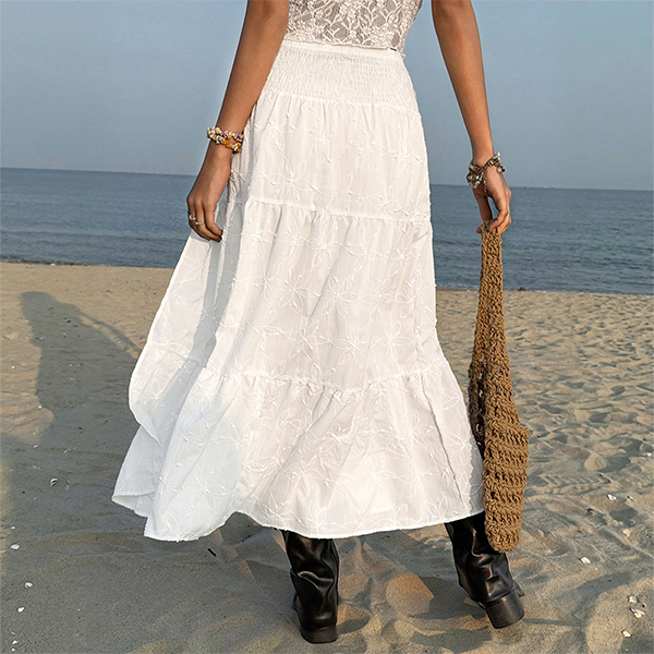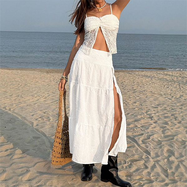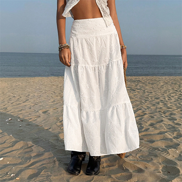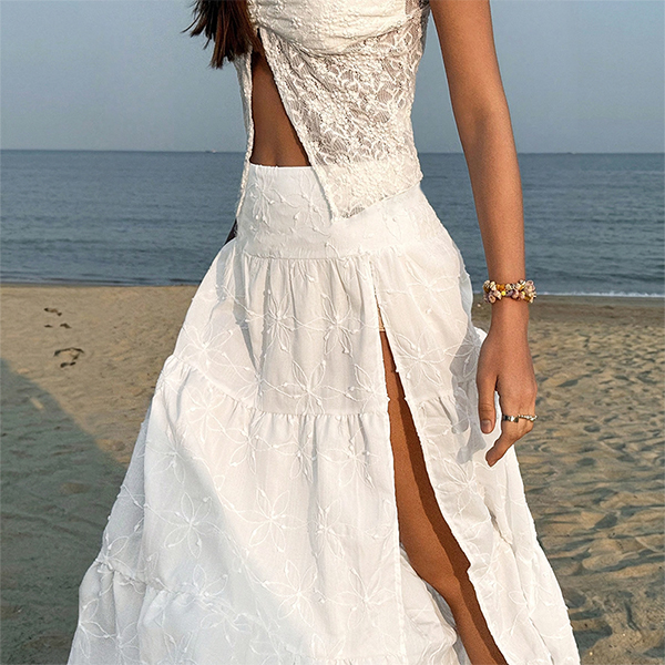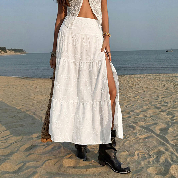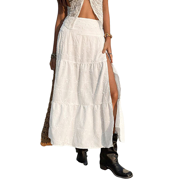 Fashion High-rise Side Slit Floral Jacquard Skirt