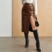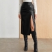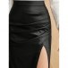 Fashion High-rise Side Slit Ruched Artificial Leather PU Skirt