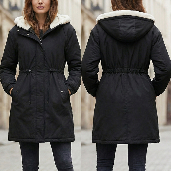This cozy jacket features practical hooded styling with adjustable drawstring waist and functional side pockets for contemporary winter sophistication. And the warm plush lining offers superior insulation and comfortable winter protection. Wanna have a try?