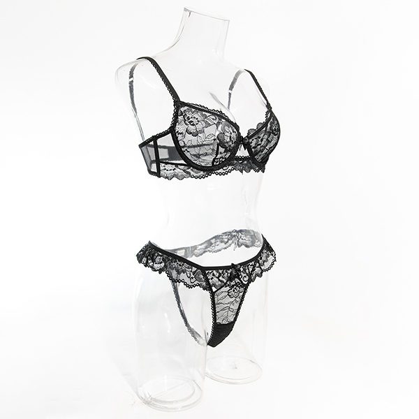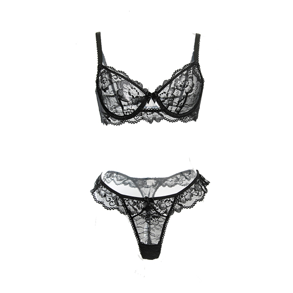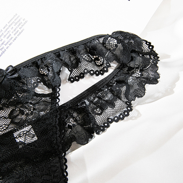 Fashion Howllowout Bowknot Ruffle Lace Two-piece Lingerie Set