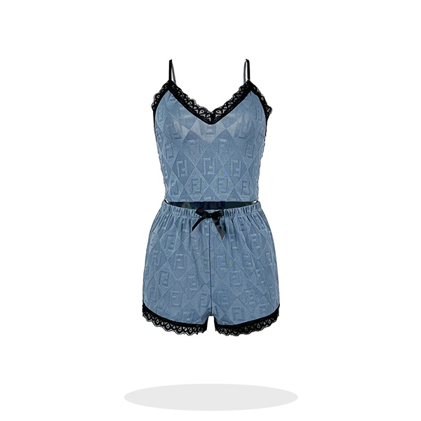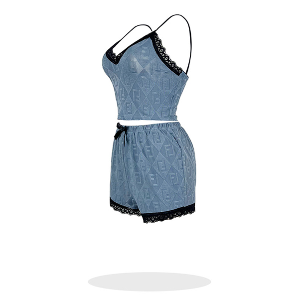 Fashion Lace Spliced Jacquard Two-piece Nightwear Set