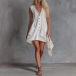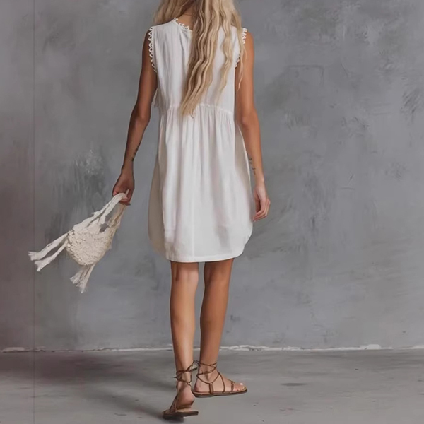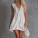 Fashion Lace Spliced V-neck Sleeveless Front Button Patch Pockets Mini Dress
