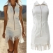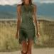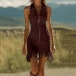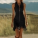 This dress features contemporary fashion styling with structured lapel collar construction and edgy front zipper design for modern tailored sophistication. And the fringed hemline offers dynamic movement and playful refinement. The bodycon construction ensures flattering definition with confident proportions that showcases the beautiful balance between lapel collar structured refinement and fringed hemline flowing elegance.Wanna have a try?