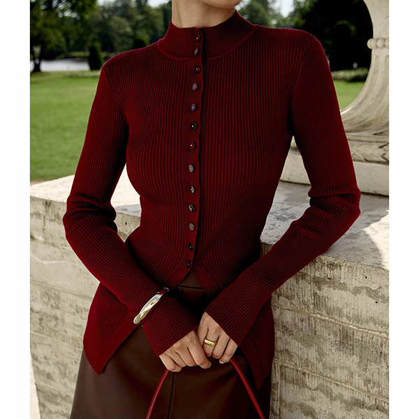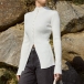 Fashion Mock Neck Long Sleeve Front Button Slit Ribbed Shirt