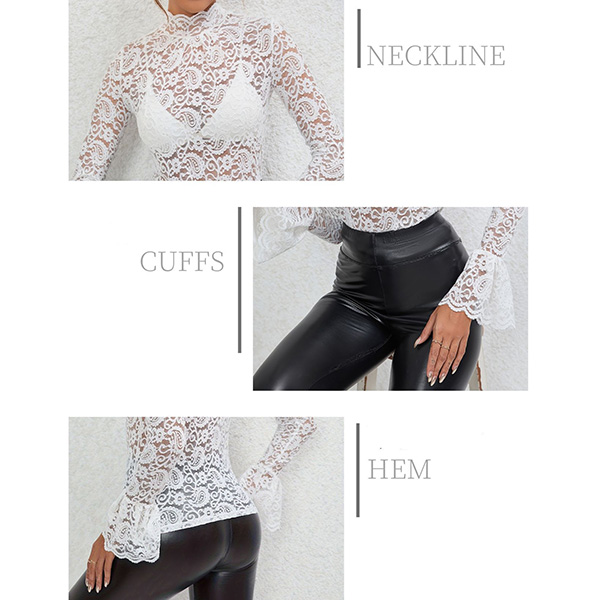 Fashion Mock Neck Trumpet Long Sleeve Semi-through Lace Shirt