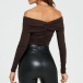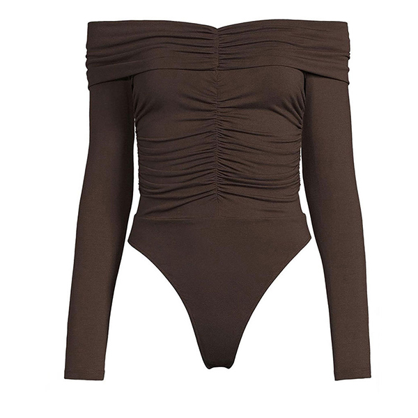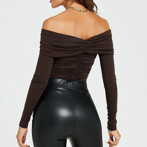 Fashion Off-the-shoulder Long Sleeve Ruched Bodysuit