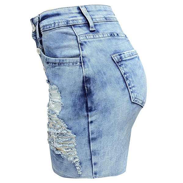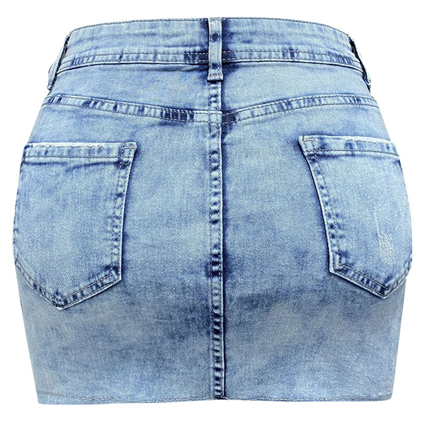 Fashion Old-washed Distressed Irregular Button Mini Denim Skirts