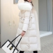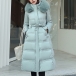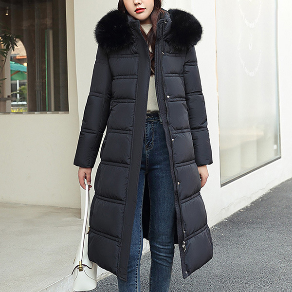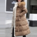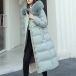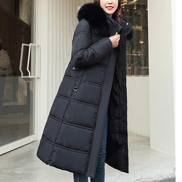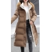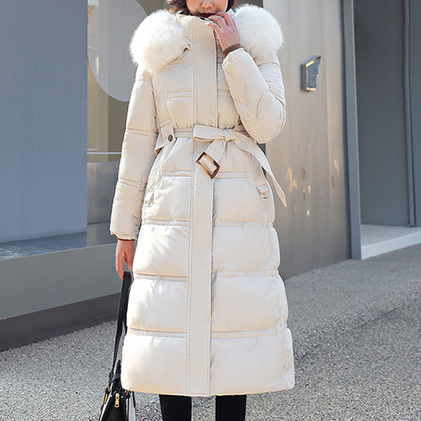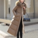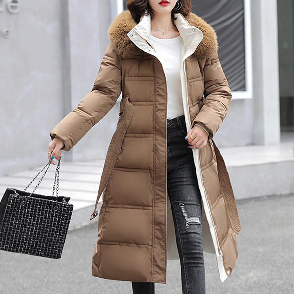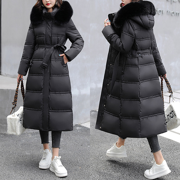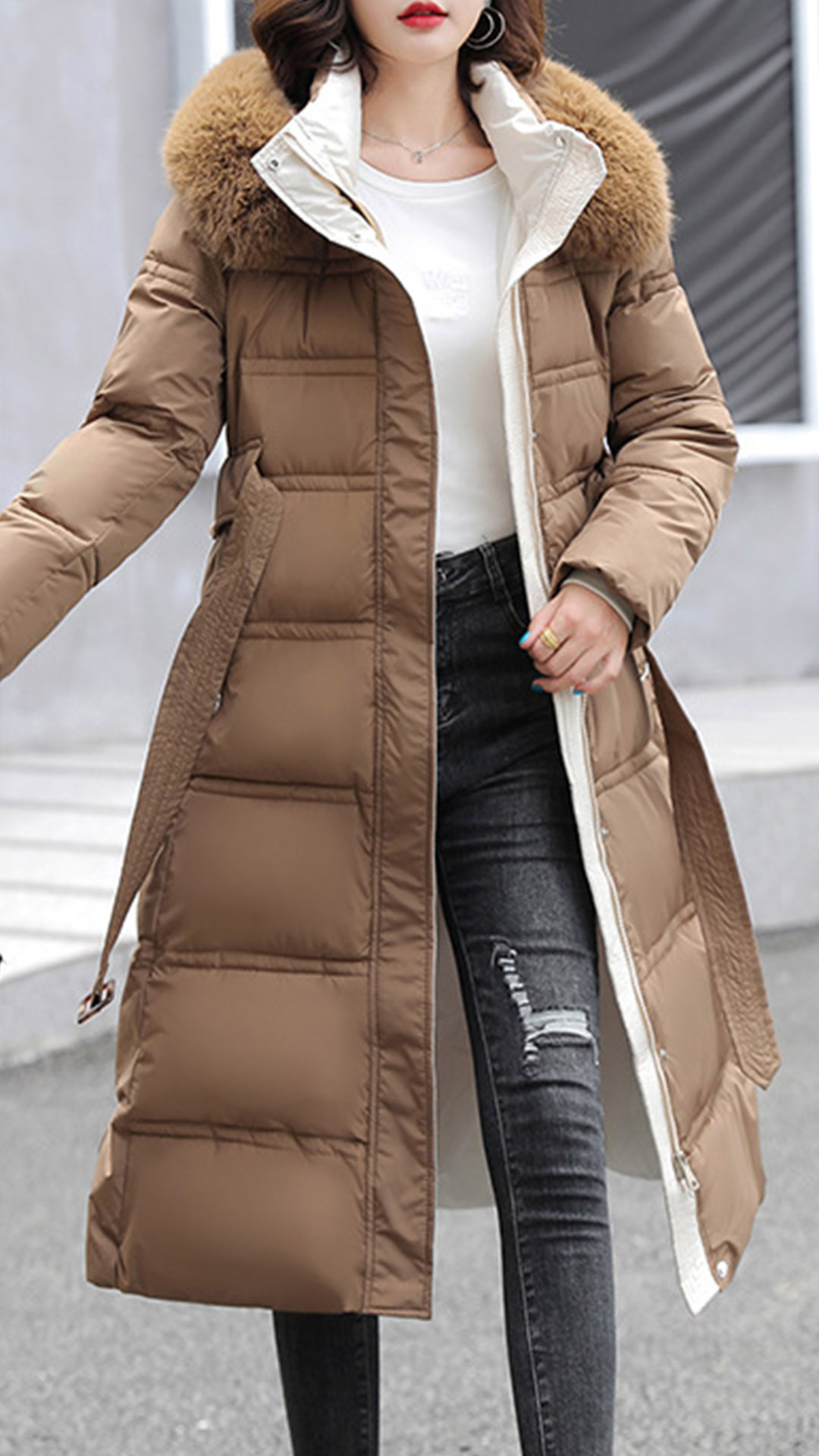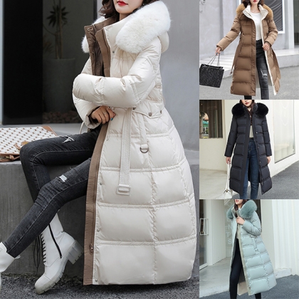 Fashion Plush Spliced Hooded Long Sleeve Quilted Longline Jacket for Women with Belt