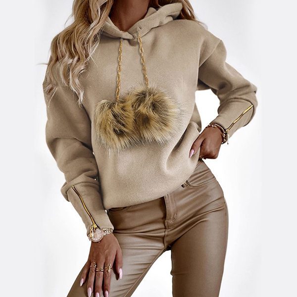 Fashion Pom-pom Chain Hooded Long Sleeve Zipper Sweatshirt