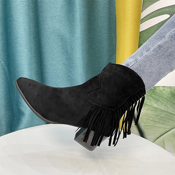 Fashion Round Toe Thick Heel Tassel Knight Boots Booties