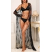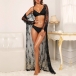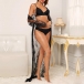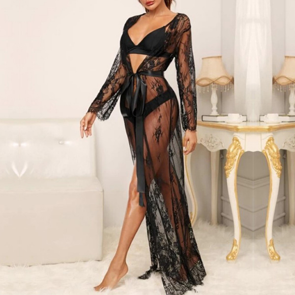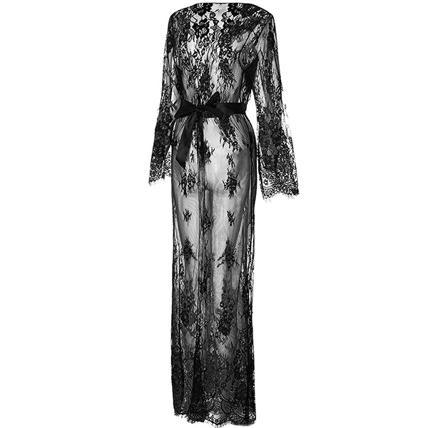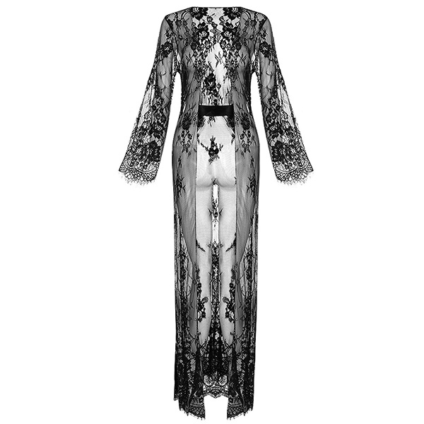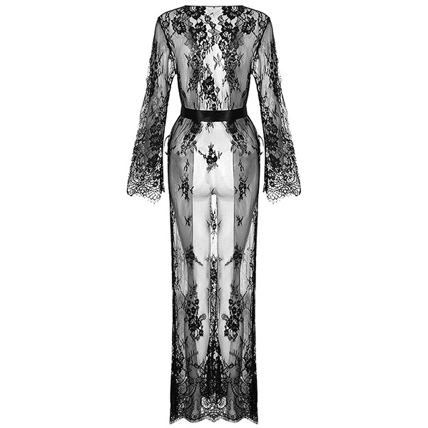 Fashion Semi-through Lace Two-piece Nightwear Set Consist of Longline Lace Robe and Belt
