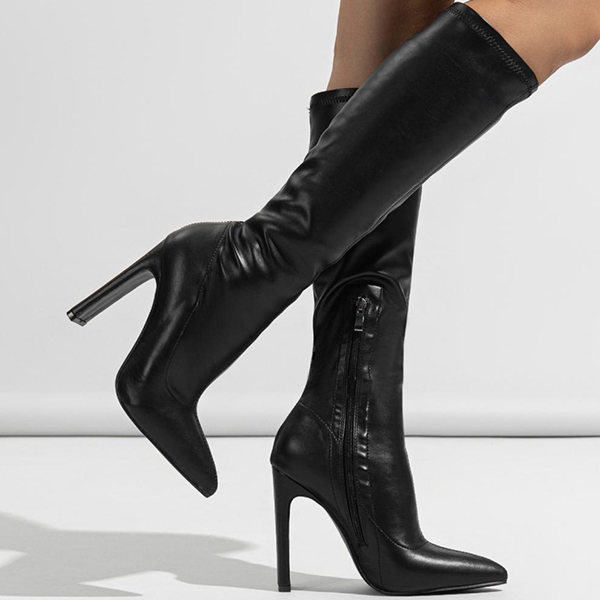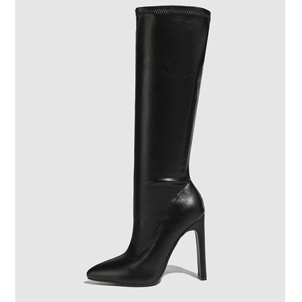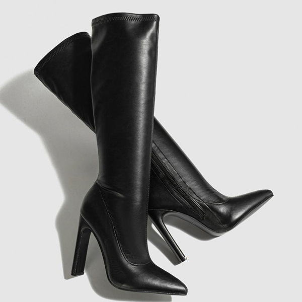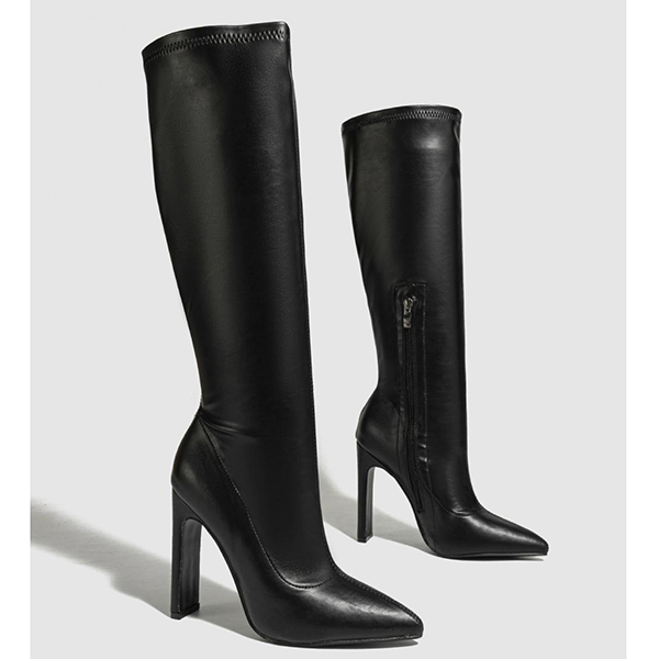 Fashion Side Zipper Pointed-toe High-heeled Artificial Leather PU Boots