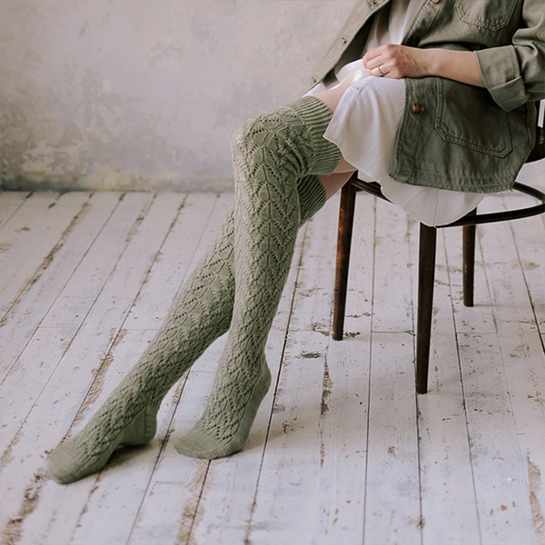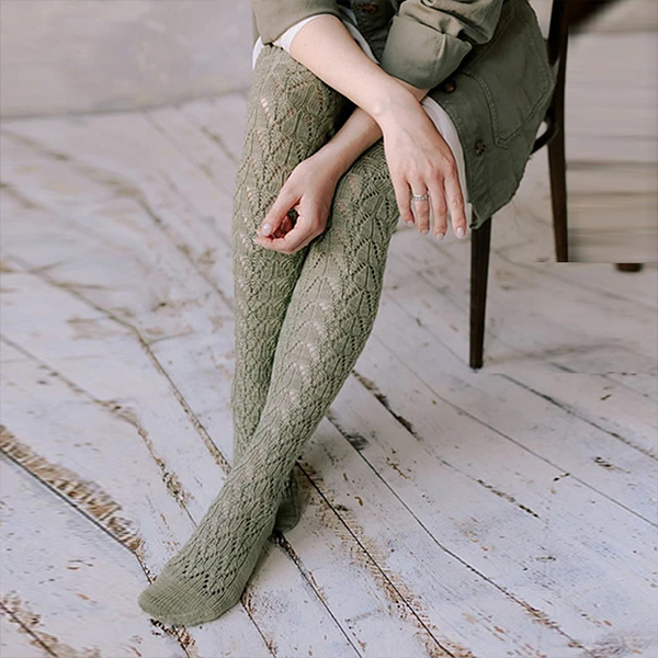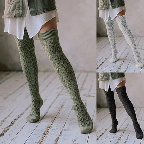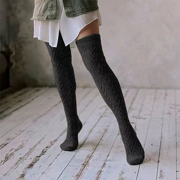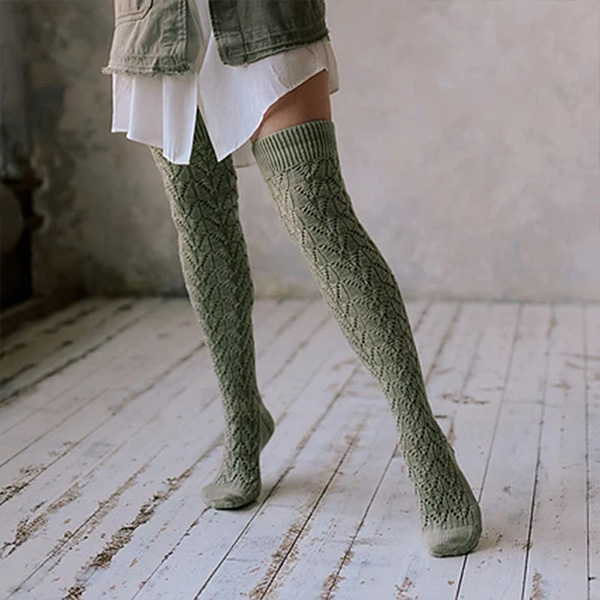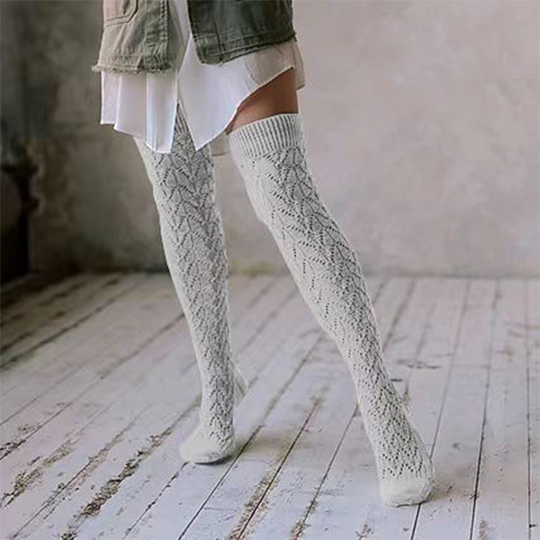 Fashion Solid Color Cable Knitting Hollowout Over-the-knee Socks for Women