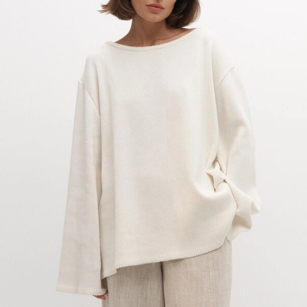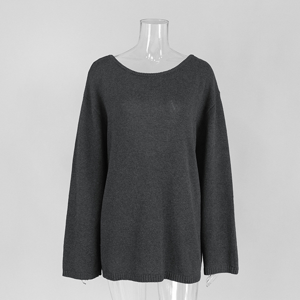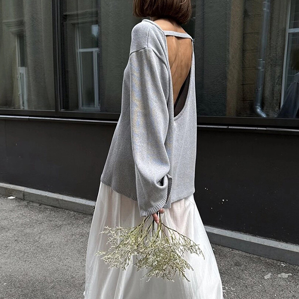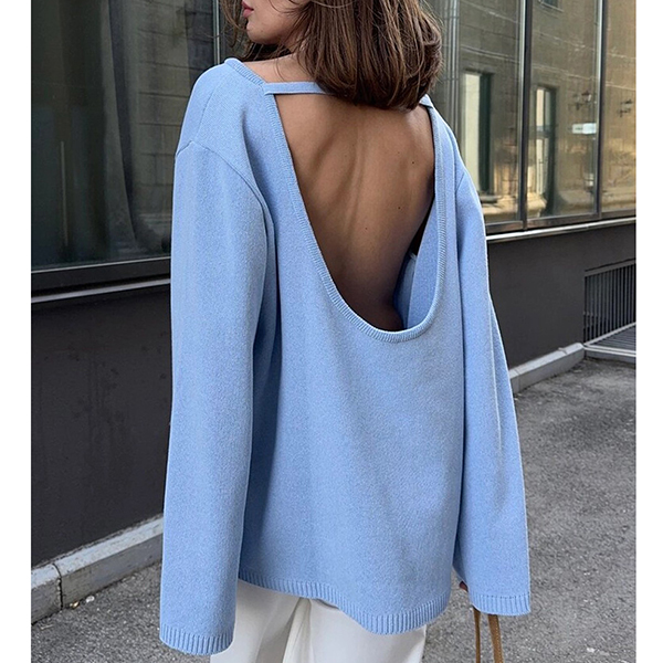 This sweater features classic crew neck styling with dramatic backless design and versatile solid color for modern sophistication. Pair with high-waisted trousers for daily wear.