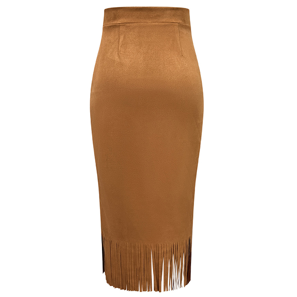 Fashion Solid Color High-rise Tassel Hemline Pencil Suede Skirt