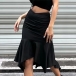 Fashion Solid Color Irregular Fishtail Hemline Skirt