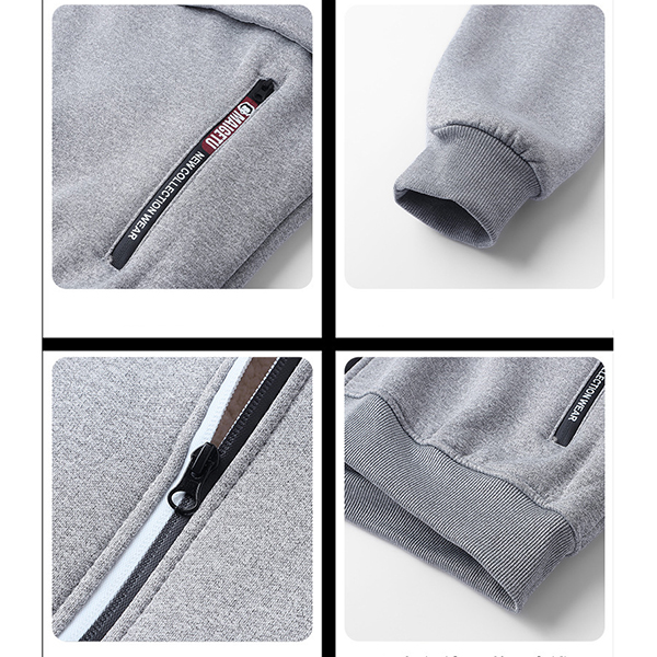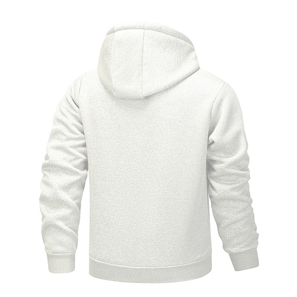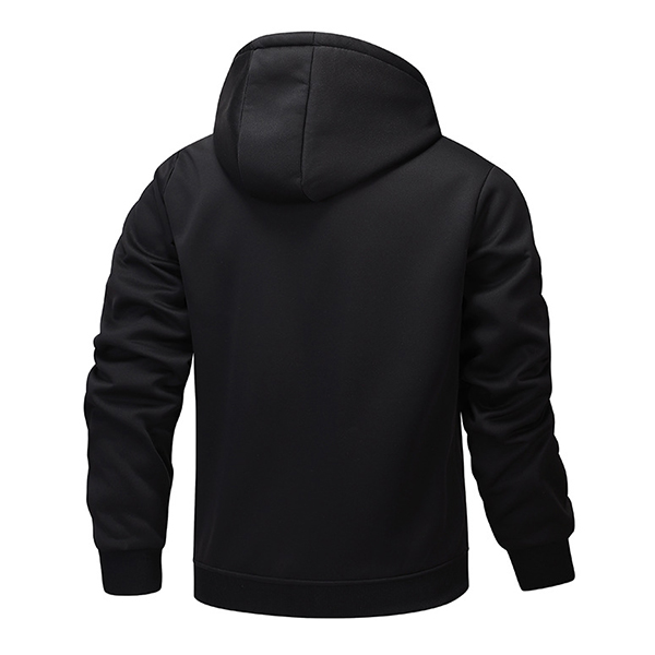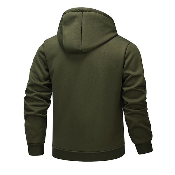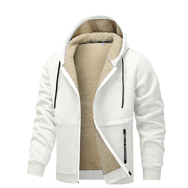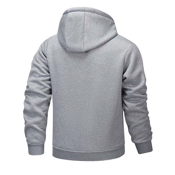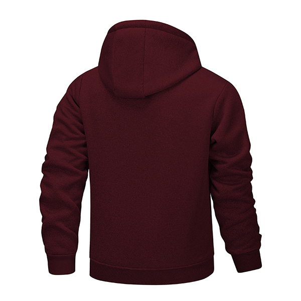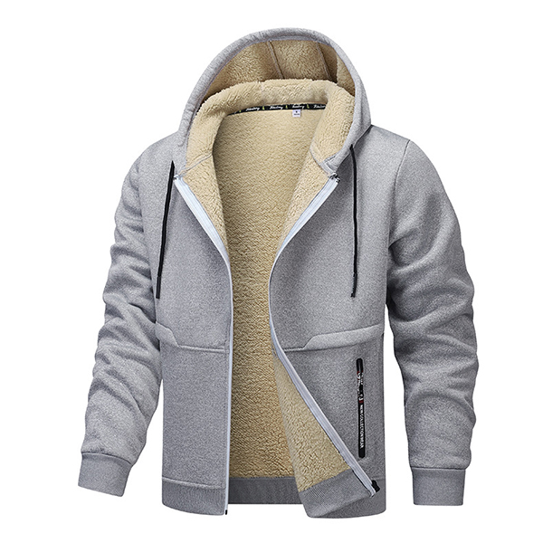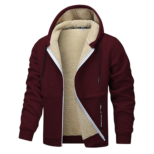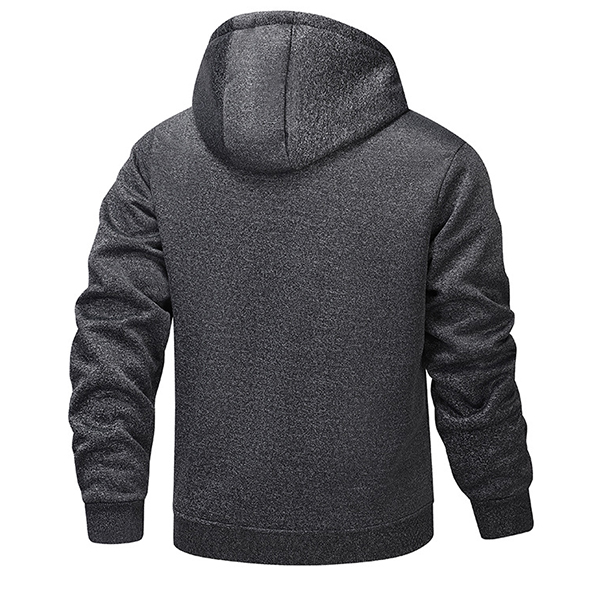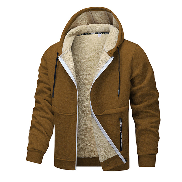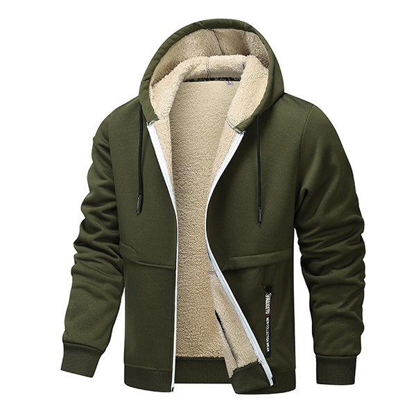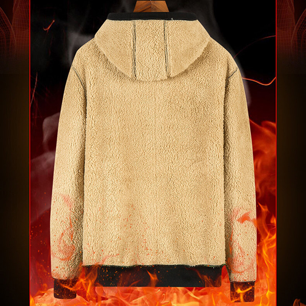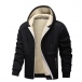 Fashion Solid Color Long Sleeve Front Zipper Drawstring Hooded Warm Plush Lined Jacket for Men