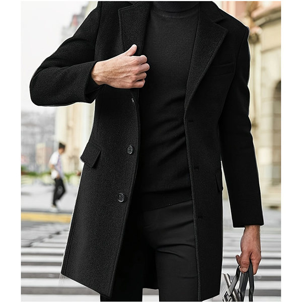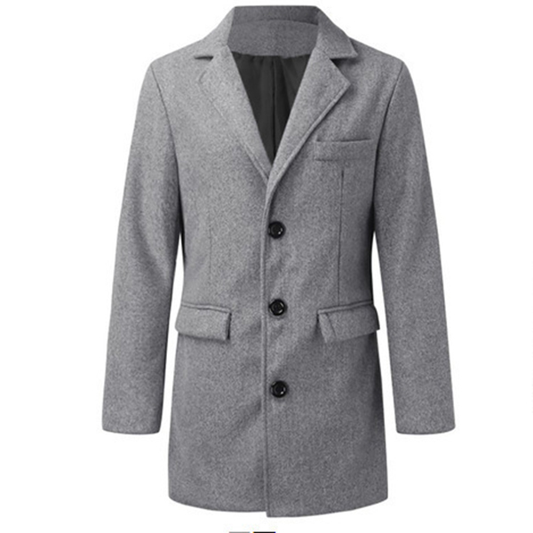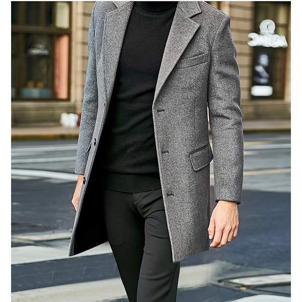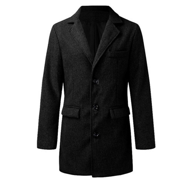 Fashion Solid Color Long Sleeve Notched Lapel Slim Fit Men's Woolen Coat