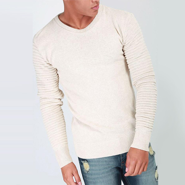 Fashion Solid Color Long Sleeve Round Neck Men's Sweater