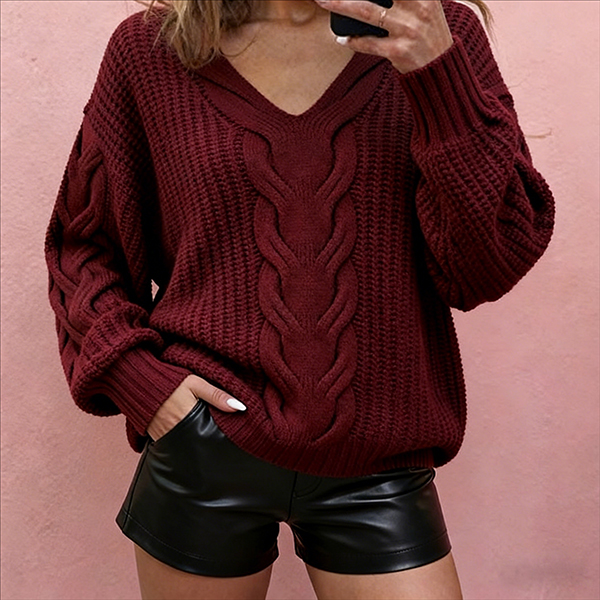 As for your autumn days,this cozy yet stylish sweater would be your wise choice. Solid color style,finished with long sleeve and v-neck design,this piece bears a simple,classic design style,but it knows how to keep you warm while it offers you different matching styles.