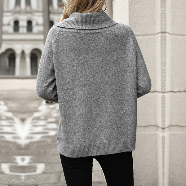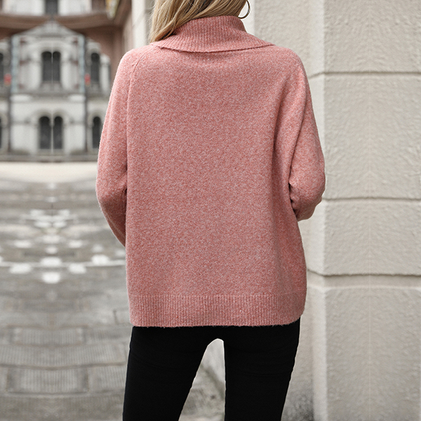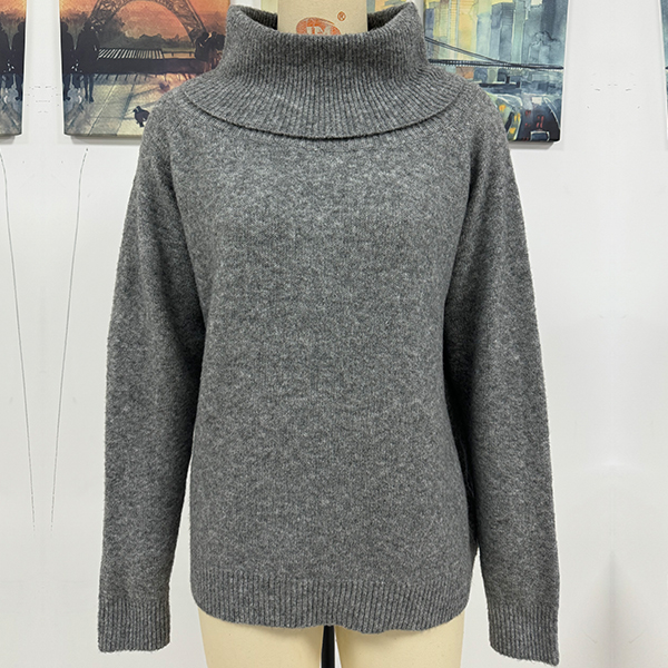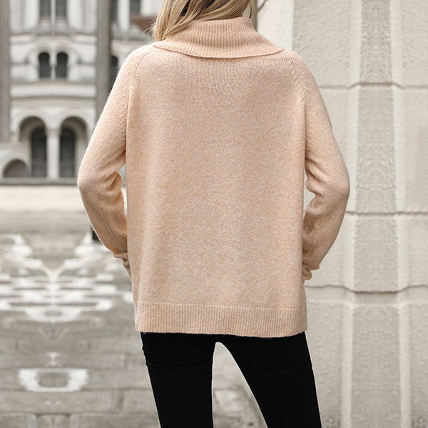 This fashionable sweater features a solid color design, an off-the-shoulder neckline (It also could be a turtleneck) and long sleeves, creating a chic and trendy look. Whether you're heading to a casual outing or a night out, this sweater is a versatile and on-trend option. Off-the-shoulder or turtleneck, that is your choice.