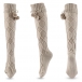 Fashion Solid Color Over-the-Knee Cable Knitted Socks with Pom-pom Tassel
