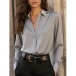 Fashion Solid Color Stand Collar Long Sleeve Fly Front Satin Blouse