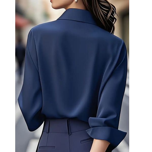This blouse features elegant stand collar styling with refined fly front closure and luxurious satin construction for contemporary professional elegance. Perfect for professional occasions, business styling, or sophisticated formal coordination. Multi-colors avabile.