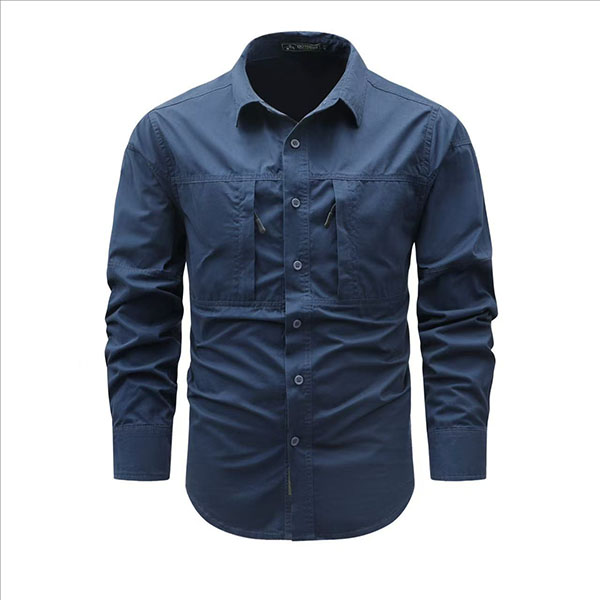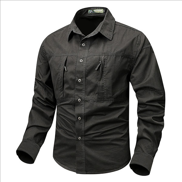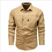 Fashion Solid Color Stand Collar Long Sleeve Patch Pockets Front Button Blouse for Men