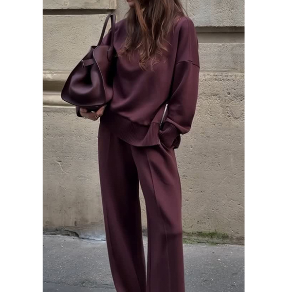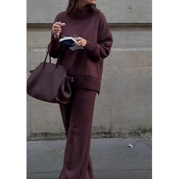 Fashion Solid Color Two-piece Set Consist of Shirt and Straight-cut Pants