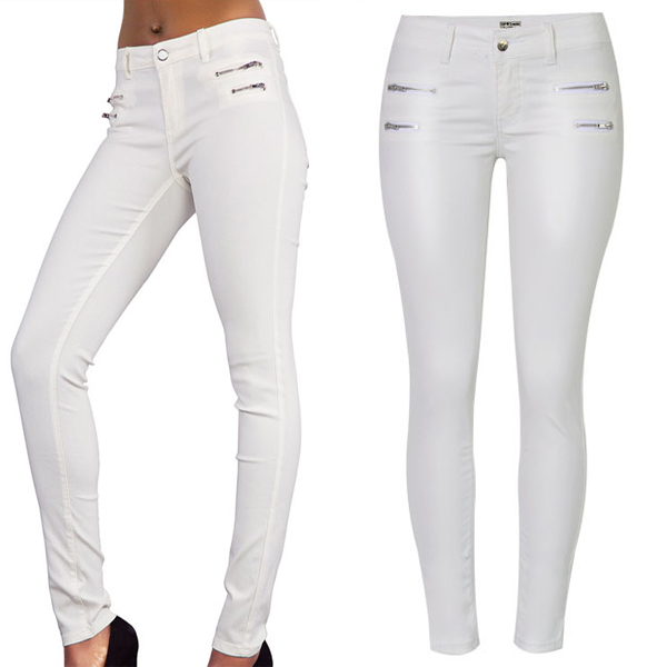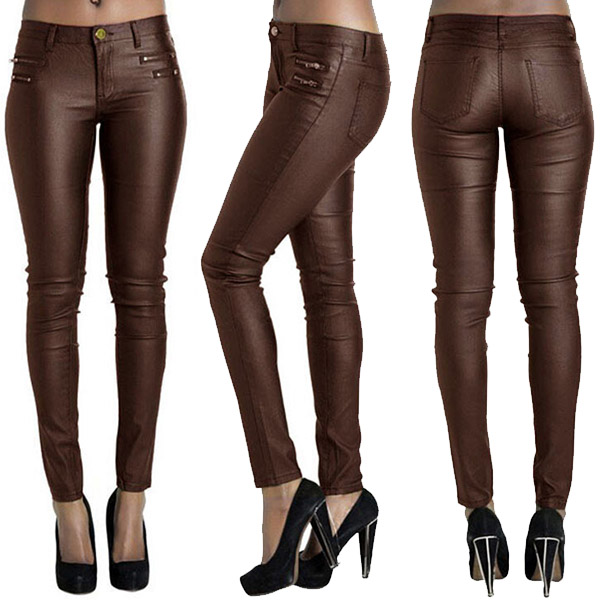 Fashion Solid Color Zipper Low-rise Artificial Leather PU Slim Fit Pants