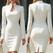 This dress features modern square neck styling with form-fitting bodycon silhouette and elegant long sleeve design for contemporary sophisticated allure. Perfect for formal wear.