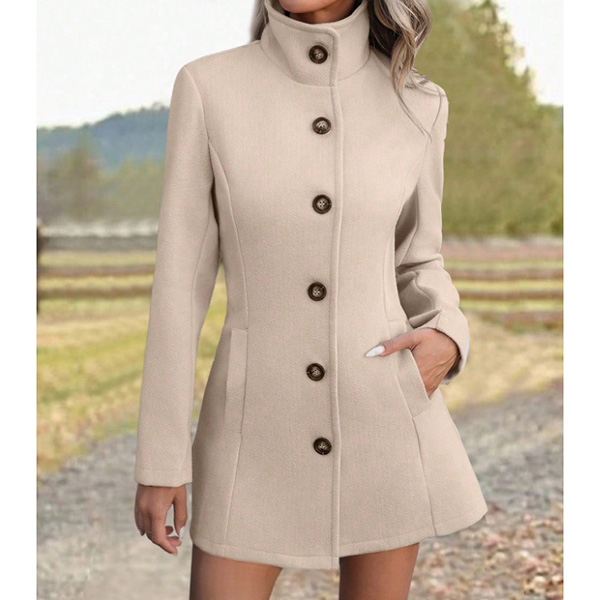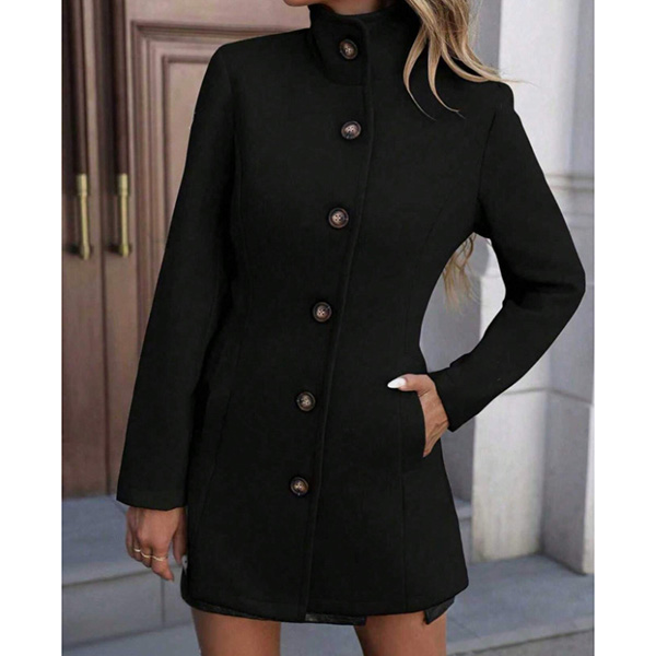 Fashion Stand Collar Long Sleeve Front Button Duffle Jacket