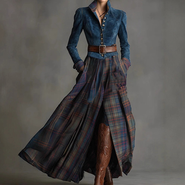 This dress features stand collar styling with classic front button closure and elegant plaid spliced detailing for contemporary refined elegance. The maxi length offers elegant floor-sweeping proportions and dramatic styling potential that showcases the beautiful balance between stand collar refinement and plaid pattern classic charm. Hope you like it.