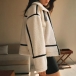 This jacket features structured stand collar with functional front zipper and sophisticated buckle detailing for modern urban sophistication. Layer over sweaters with jeans and boots for urban winter sophistication. Or style with fitted tops and tailored pieces for contemporary professional appeal.