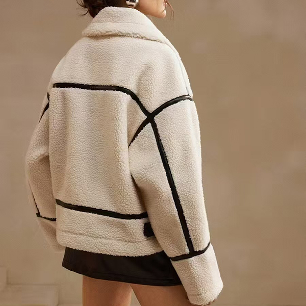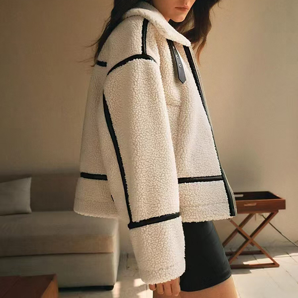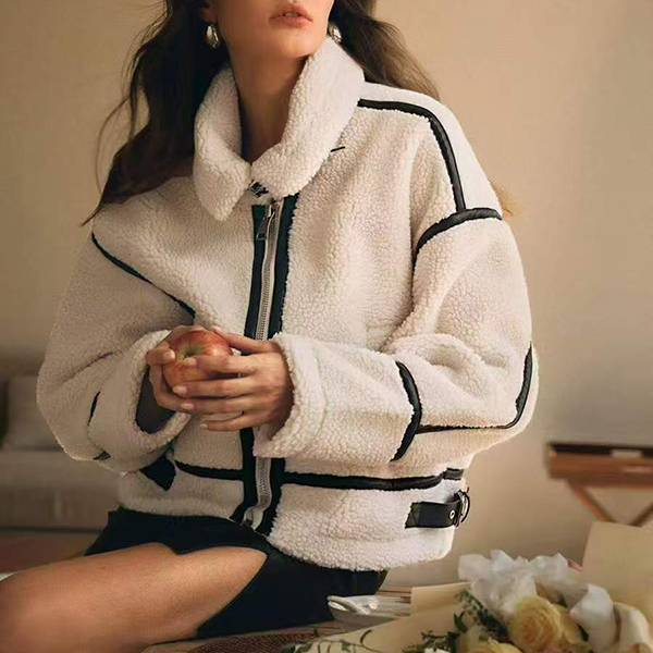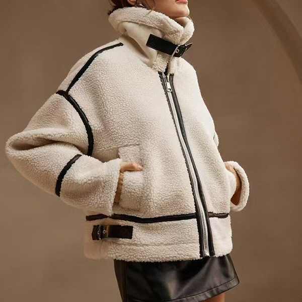 Fashion Stand Collar Long Sleeve Front Zipper Buckle Plush Jacket