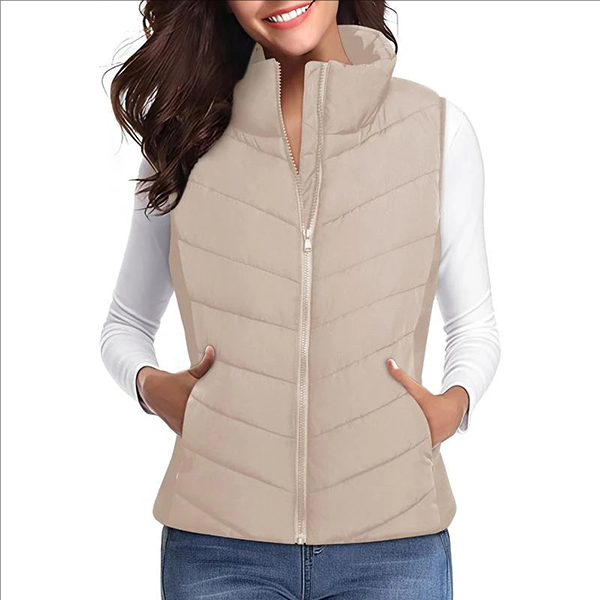 Fashion Stand Collar Sleeveless Front Zipper Quilted Vest