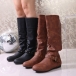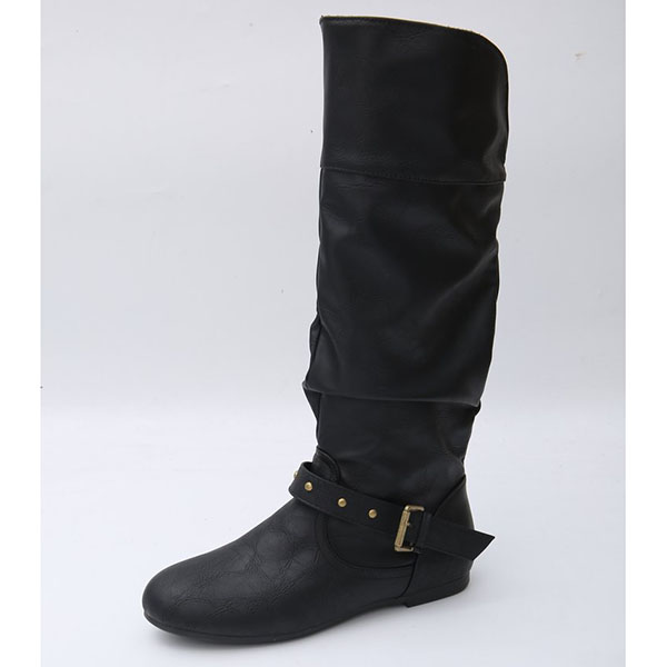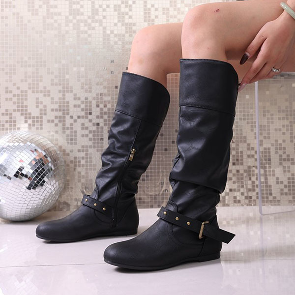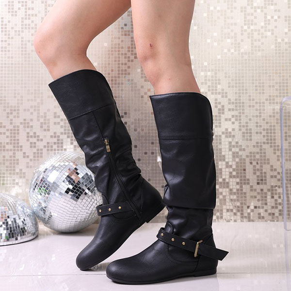 Fashion Strap Side Buckle Round Toe Flat Draped Boots