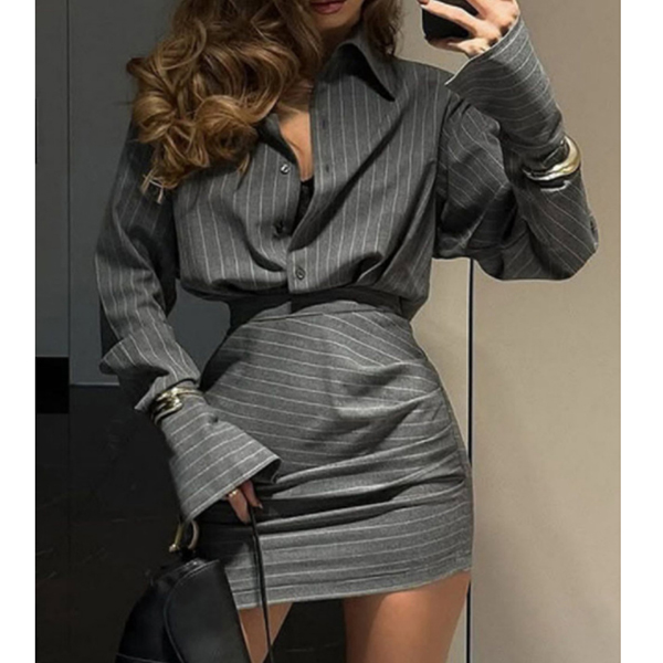 This coordinated set offers effortless styling with classic stripe appeal. The matching blouse and mini-skirt create a polished look that takes the guesswork out of outfit coordination. The stripe print adds timeless pattern interest and versatile styling options. Wanna have a try?