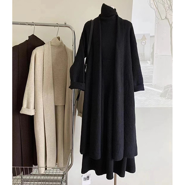 Fashion Three-piece Consist of Mock Neck Sleeveless Shirt, Midi Skirt and Cardigan