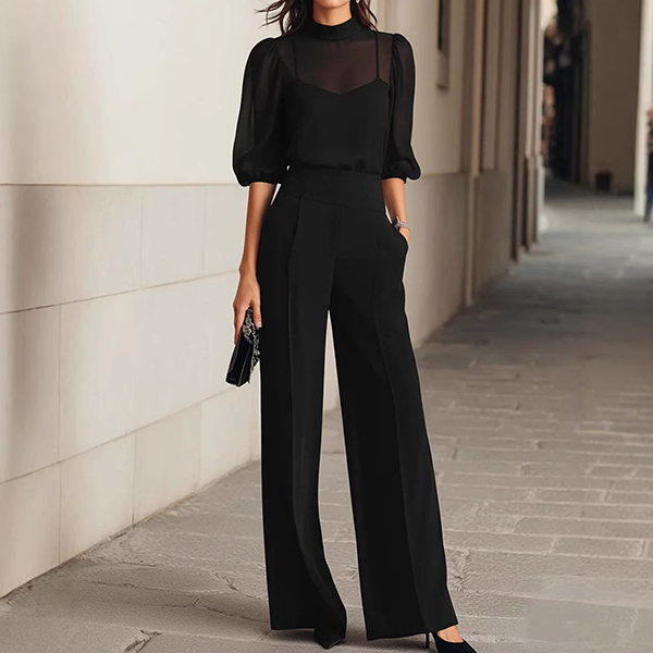 Fashion Three-piece Set Consist of Cami Top, Semi-through Shirt and Wide-leg Pants