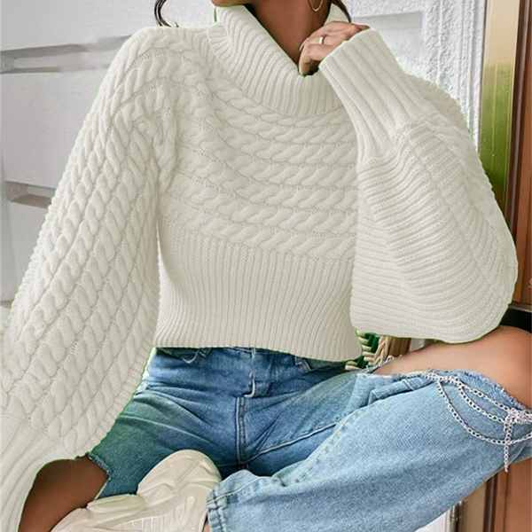 Fashion Turtleneck Long Sleeve Cable Pattern Knitted Sweater