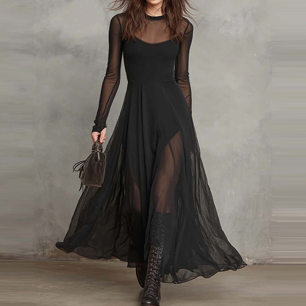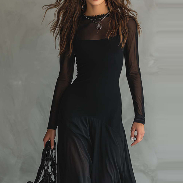 Fashion Two-Piece Set: Black Sheer Mesh Dress with Separate Cami Slip