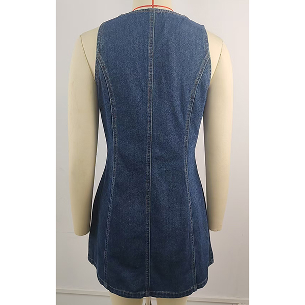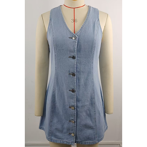 This denim dress features contemporary fashion styling with classic V-neck construction and vintage-inspired old-washed denim design for modern casual sophistication. Perfect for casual occasions, everyday styling, or contemporary versatile coordination.